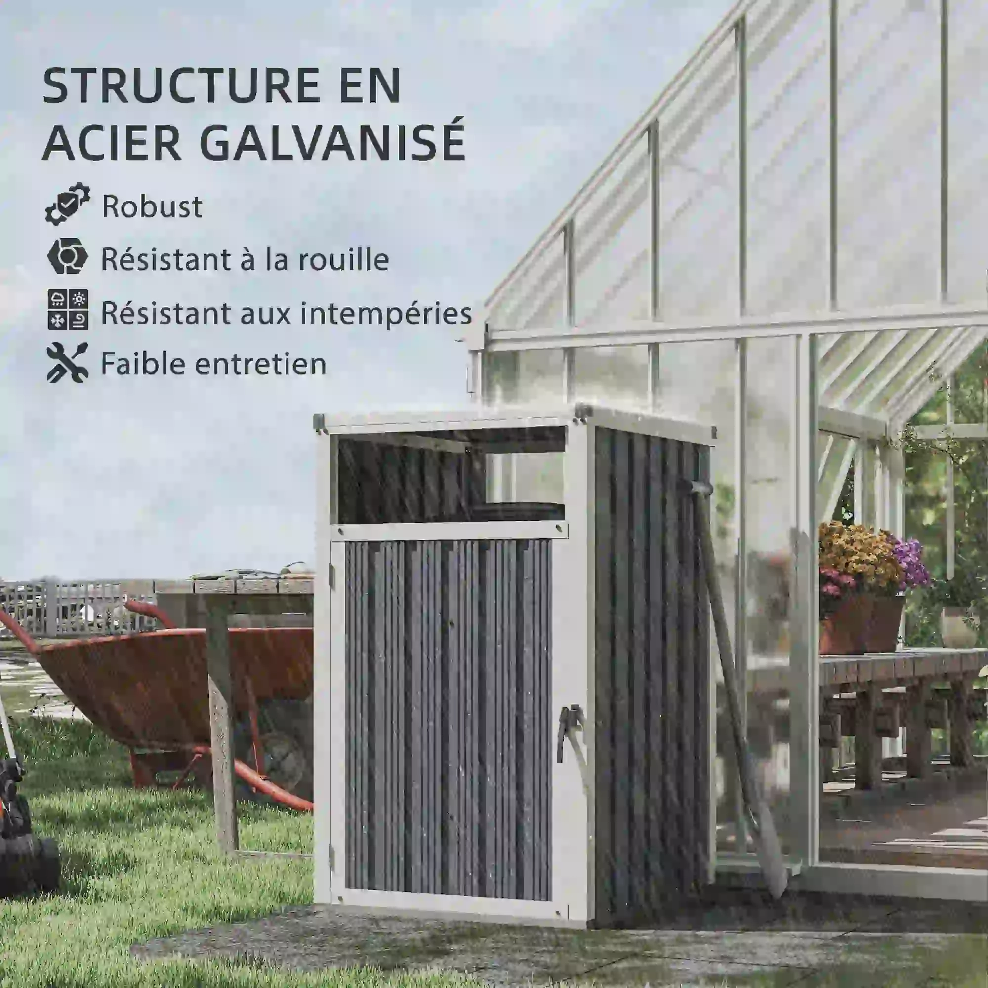 Abri pour 1 poubelle 240L cache poubelle extérieur couvercle relevable 180° acier
