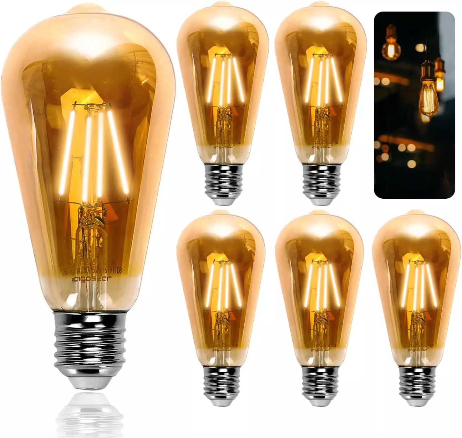 Aigostar Ampoule Edison Vintage E27 6W – ST64 Blanc Chaud 2200K