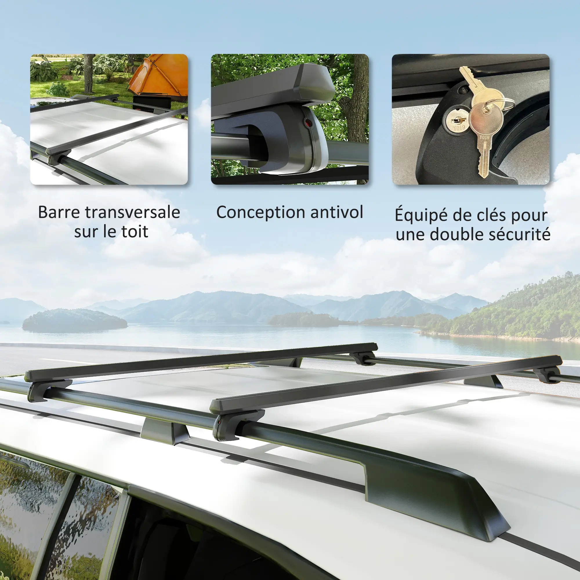 🔒 Barres de toit verrouillables avec 2 clés incluses