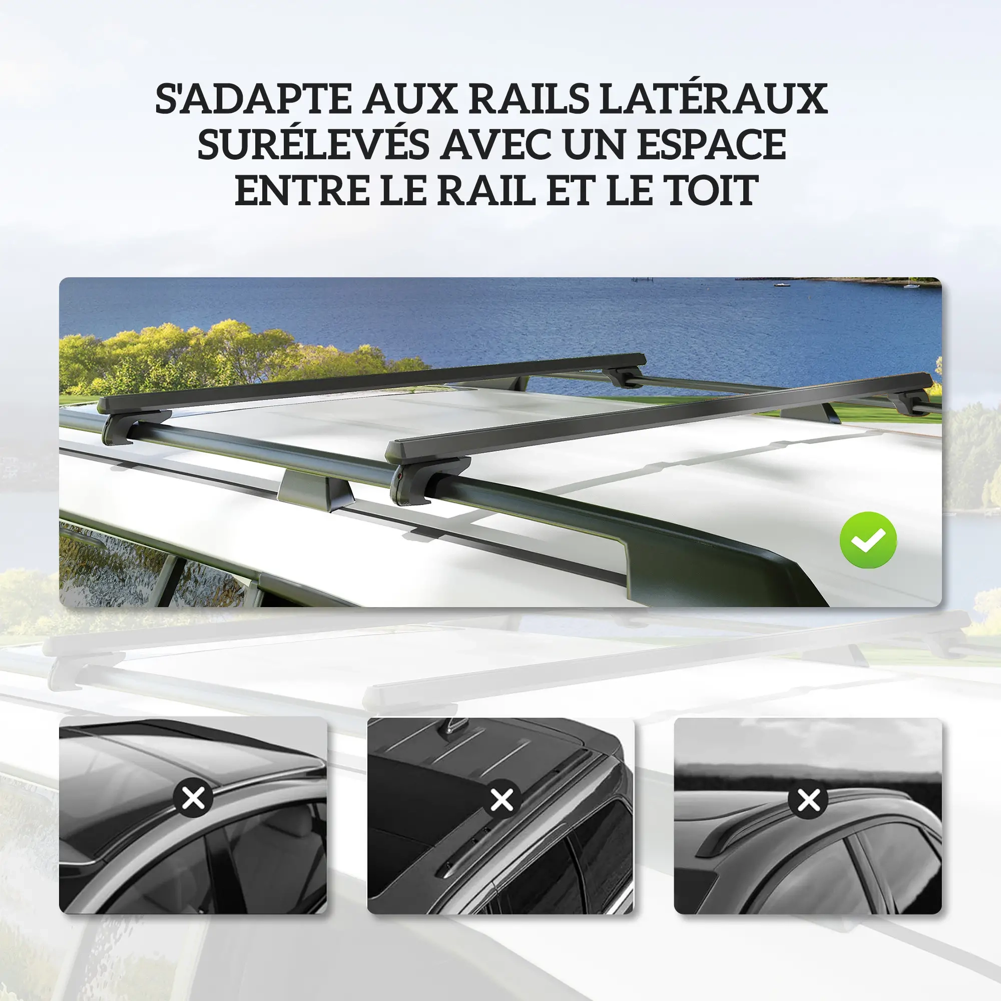 Compatibilité : Véhicules équipés de rails de toit