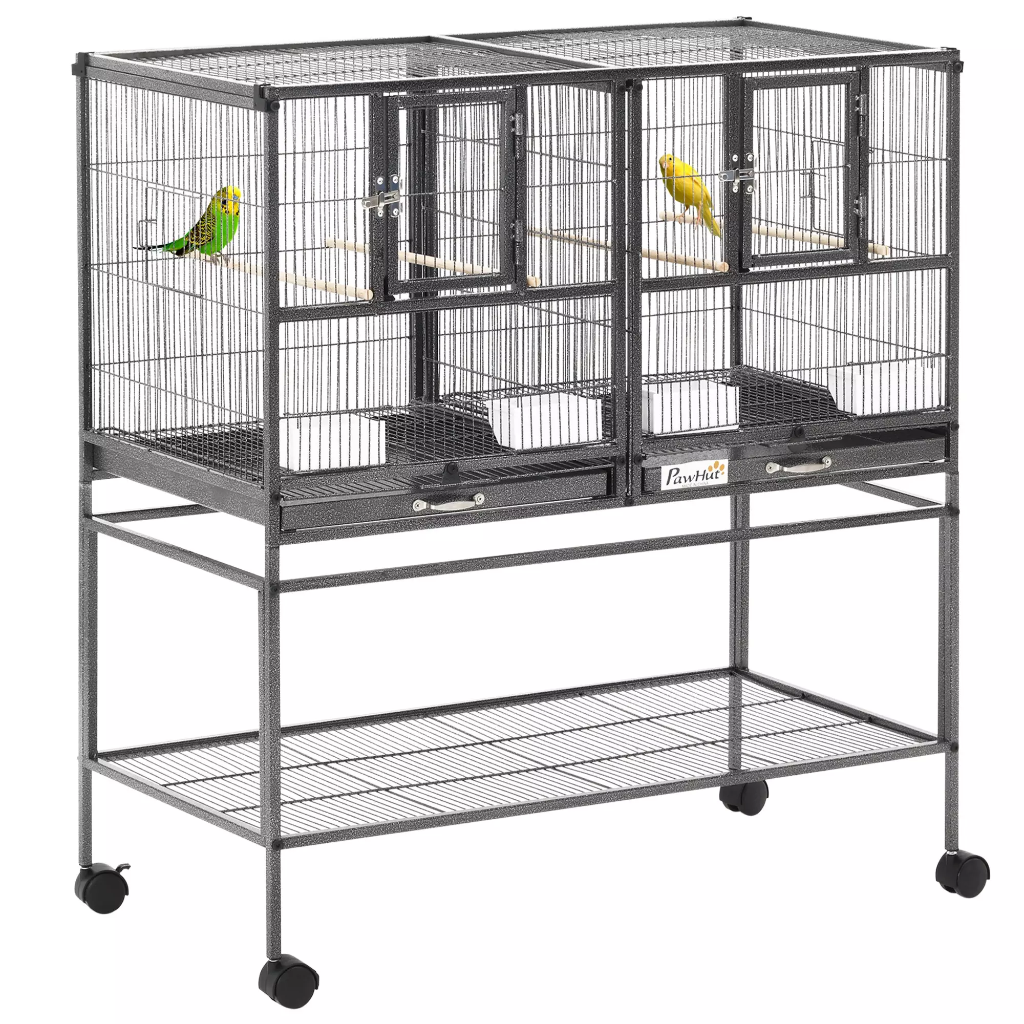 Cage à oiseaux avec séparation mangeoire et perchoir 95L x 45,5l x 102H cm Noir et Gris