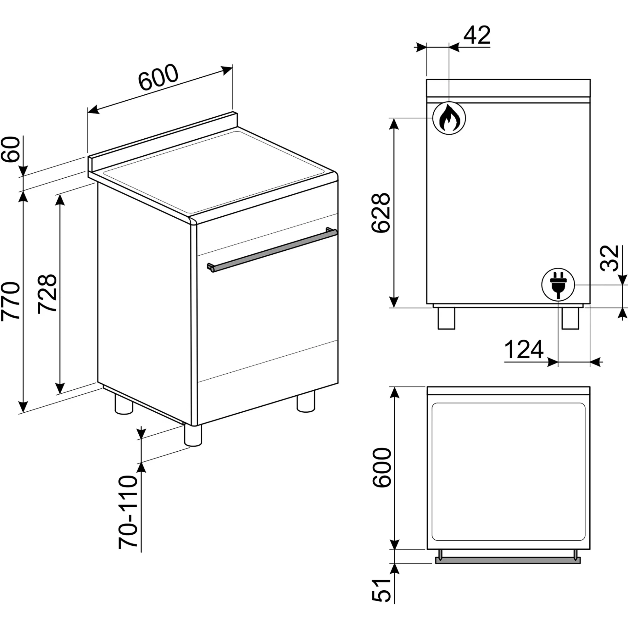 🔥 Cuisinière gaz SMEG GP61X9 – 60 × 60 cm – Inox