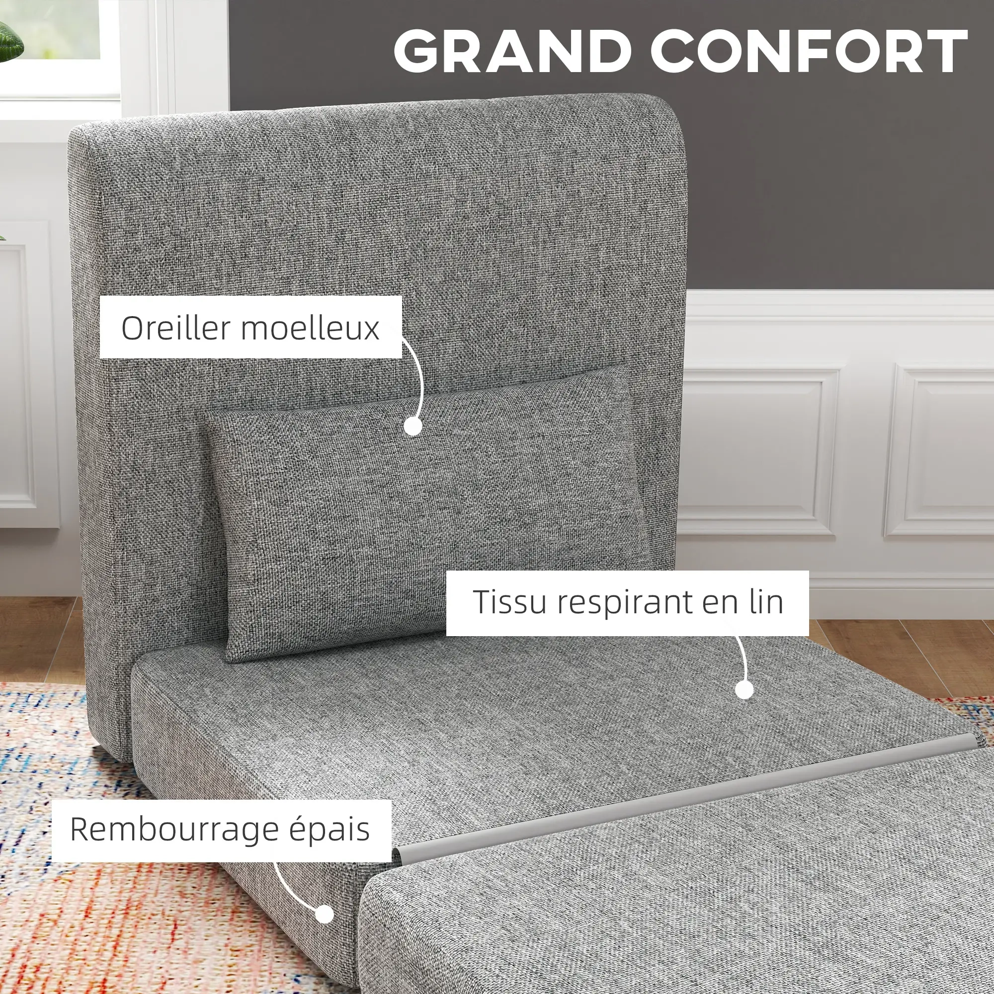 Fauteuil chauffeuse pliant 3 en 1 avec coussin, convertible, matelas dépliant pour invités, salon, bureau, gris