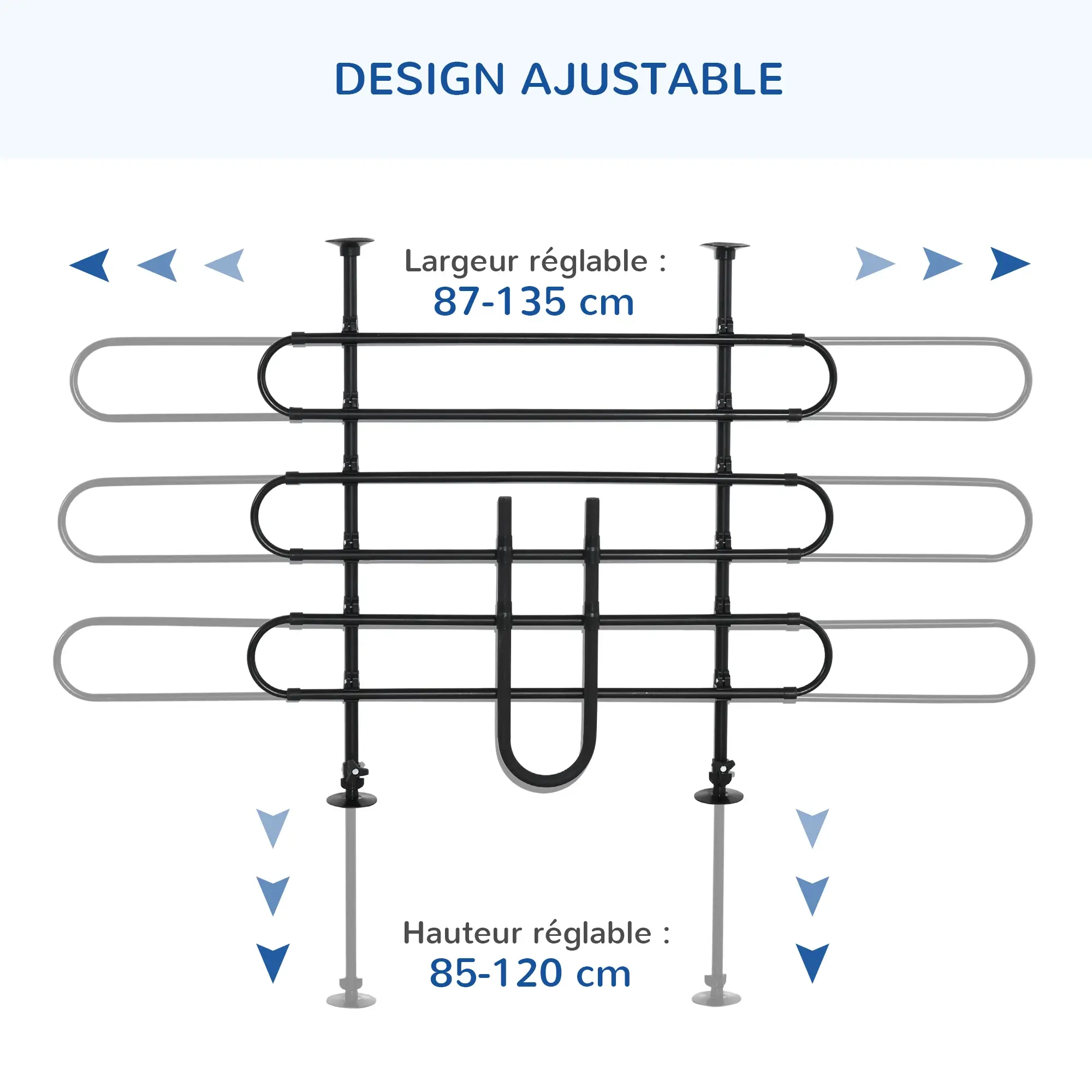 Grille de séparation voiture pour chien réglable, largeur : 87-135 cm, hauteur : 85-120 cm, barrière de sécurité universelle en acier, pour coffre de voiture pour chien, noir