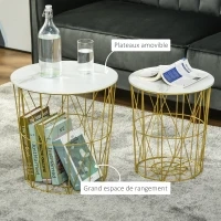 Lot de 2 Tables Basses gigognes – Bicolore Structure métal doré Plateau