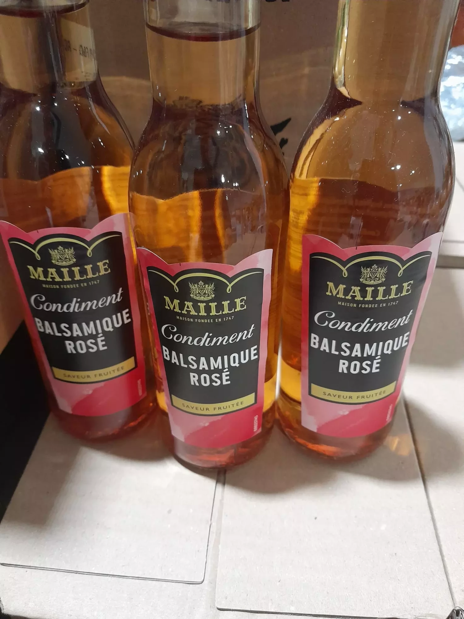 Le Balsamique Rosé Maille est un condiment délicat et fruité, aux notes légères et équilibrées. Sa douceur subtile et sa couleur rosée en font un allié idéal pour sublimer salades, crudités, poissons, légumes ou fruits.