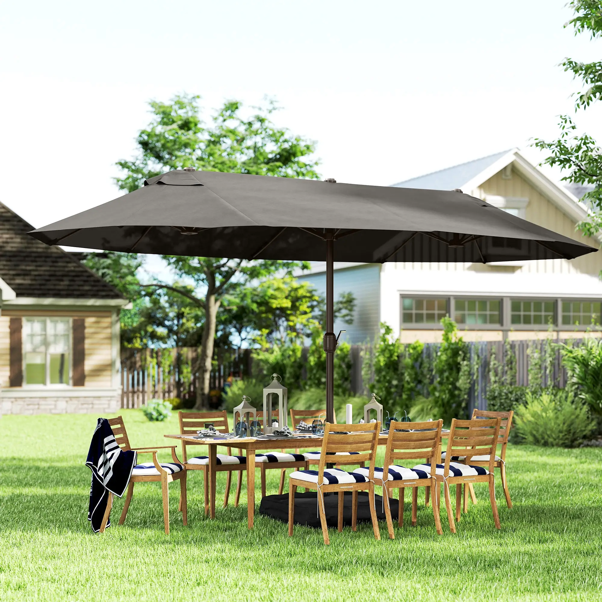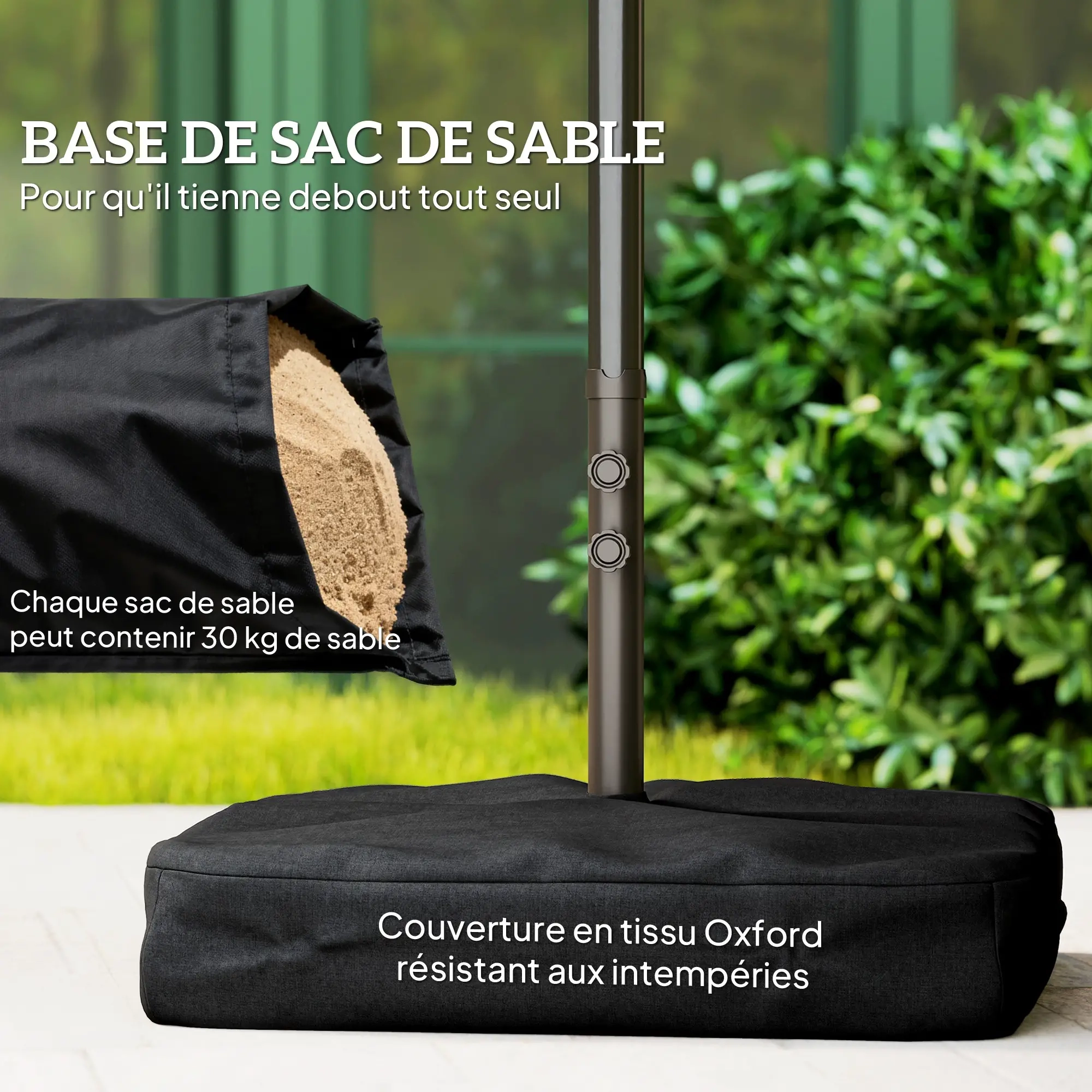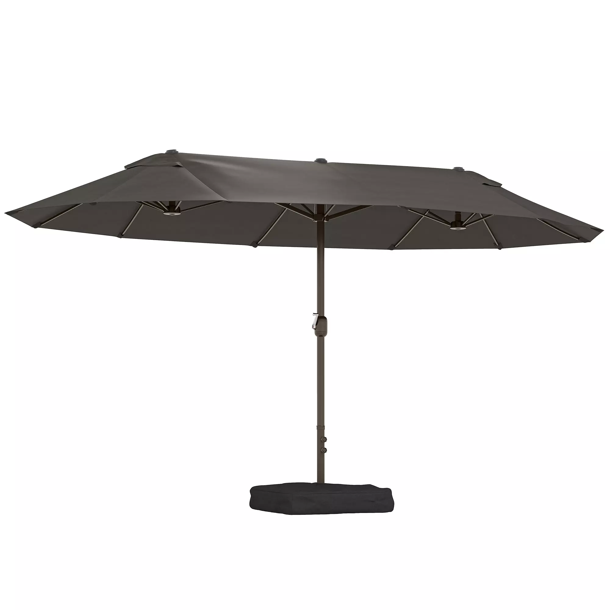 🌞 Parasol de jardin extérieur double rectangulaire 4,6 x 2,7 m – Gris (Base & sacs de lestage inclus)