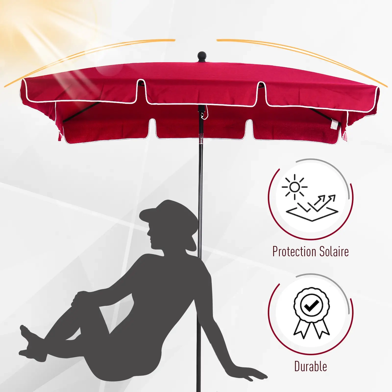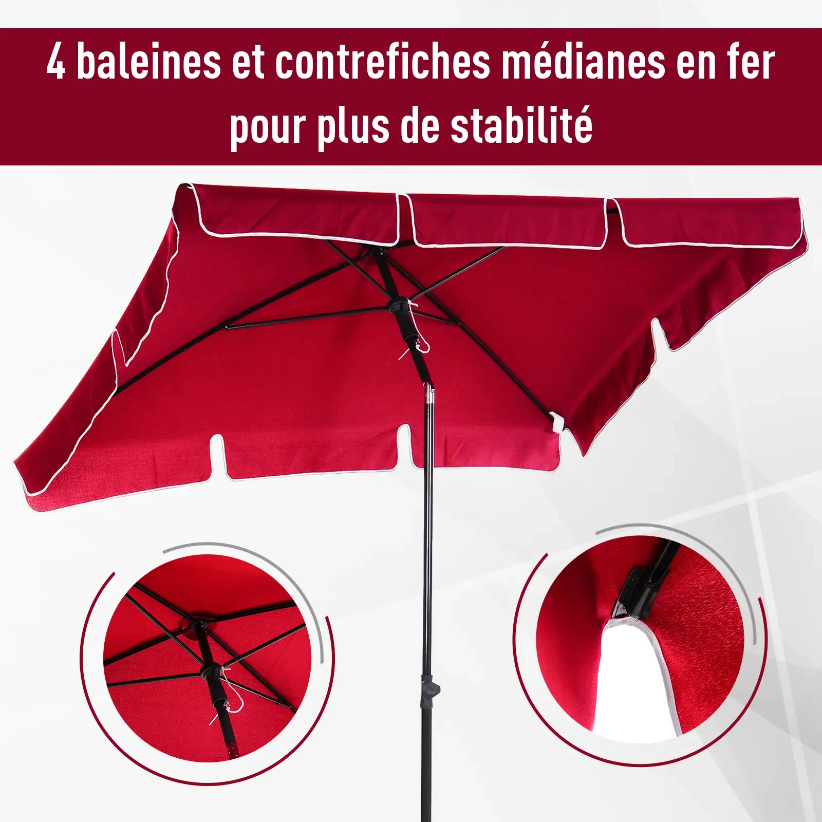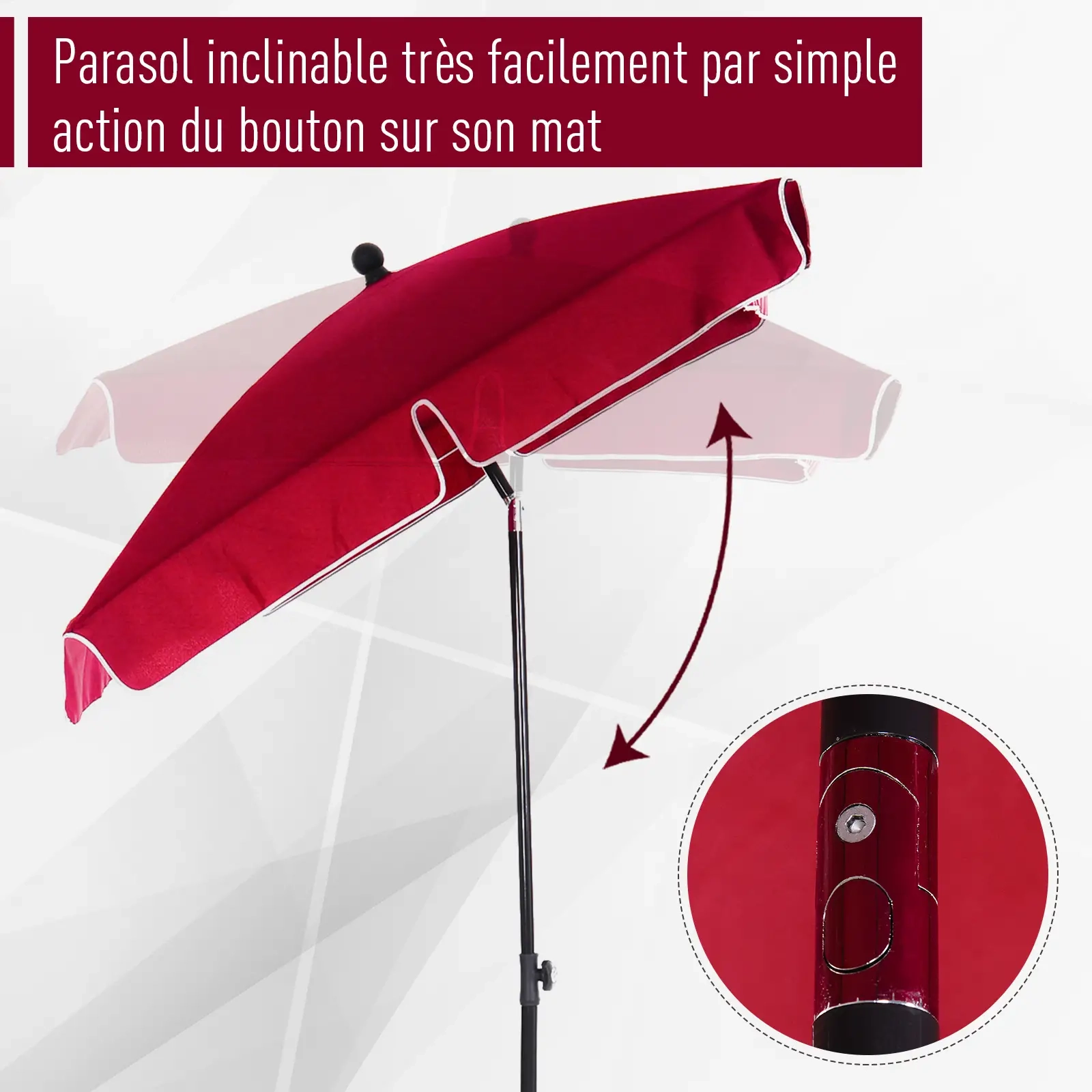 ☀️ Parasol de jardin droit rectangulaire inclinable – Structure aluminium – Rouge