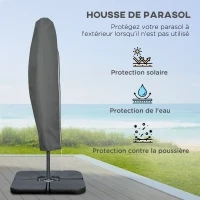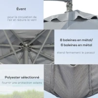 Parasol déporté octogonal rabattable diamètre 3 m parasol de jardin avec pied en croix gris foncé