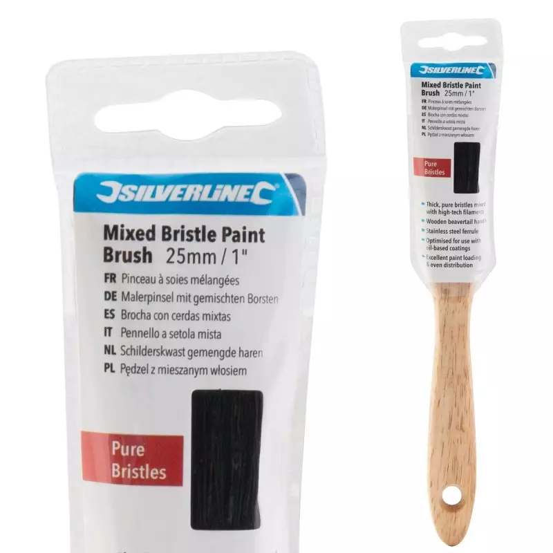 📌 En résumé : le pinceau à soies mélangées Silverline est un outil polyvalent pour peinture, adapté aux peintures à base d’huile et laquées, avec une bonne tenue en main et une répartition efficace de la peinture sur la surface.