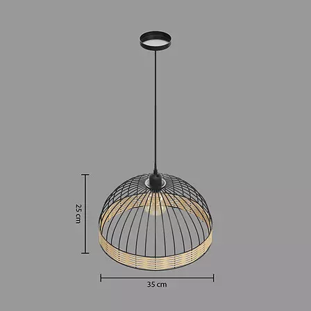 💡 Fiche technique – Suspension Suwa – Ø 35 cm – Métal filaire & rotin – Noir