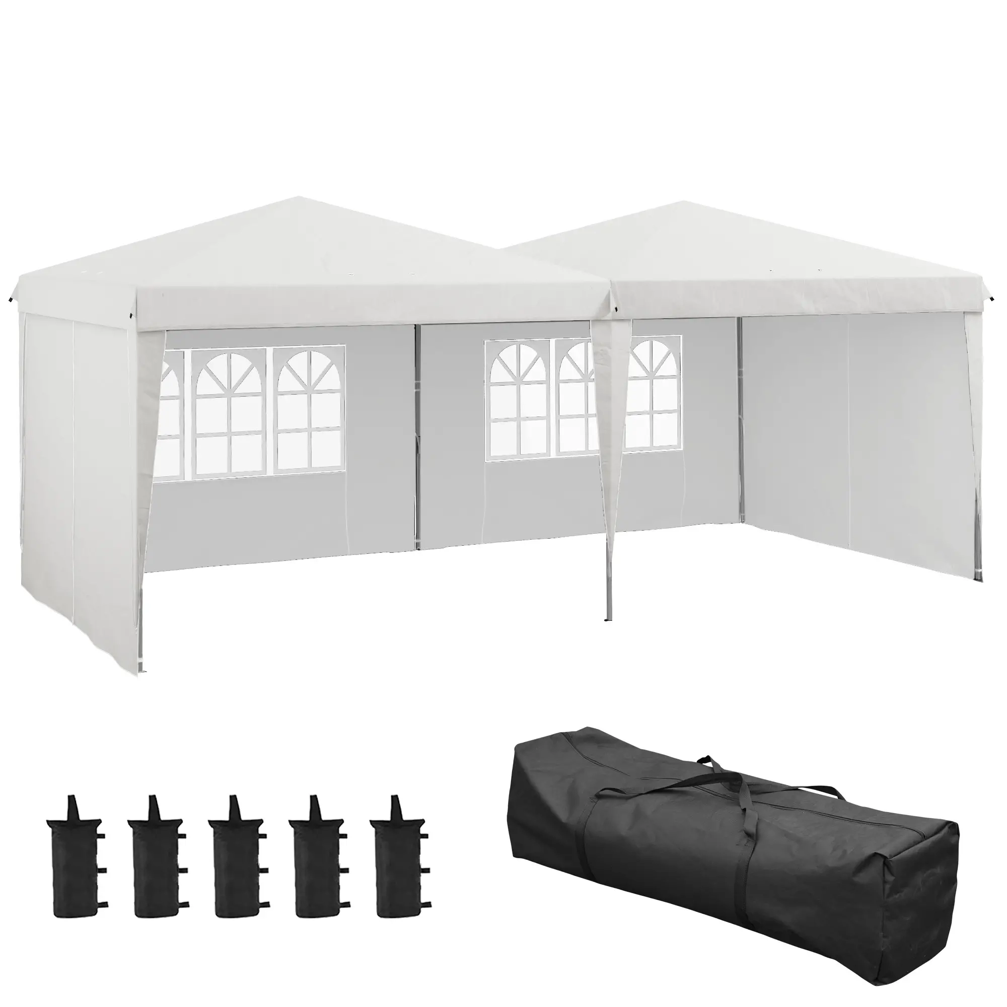 Tente de réception Tonnelle barnum pliable 6x3m avec parois latérales Hauteur réglable avec sac de transport Roues