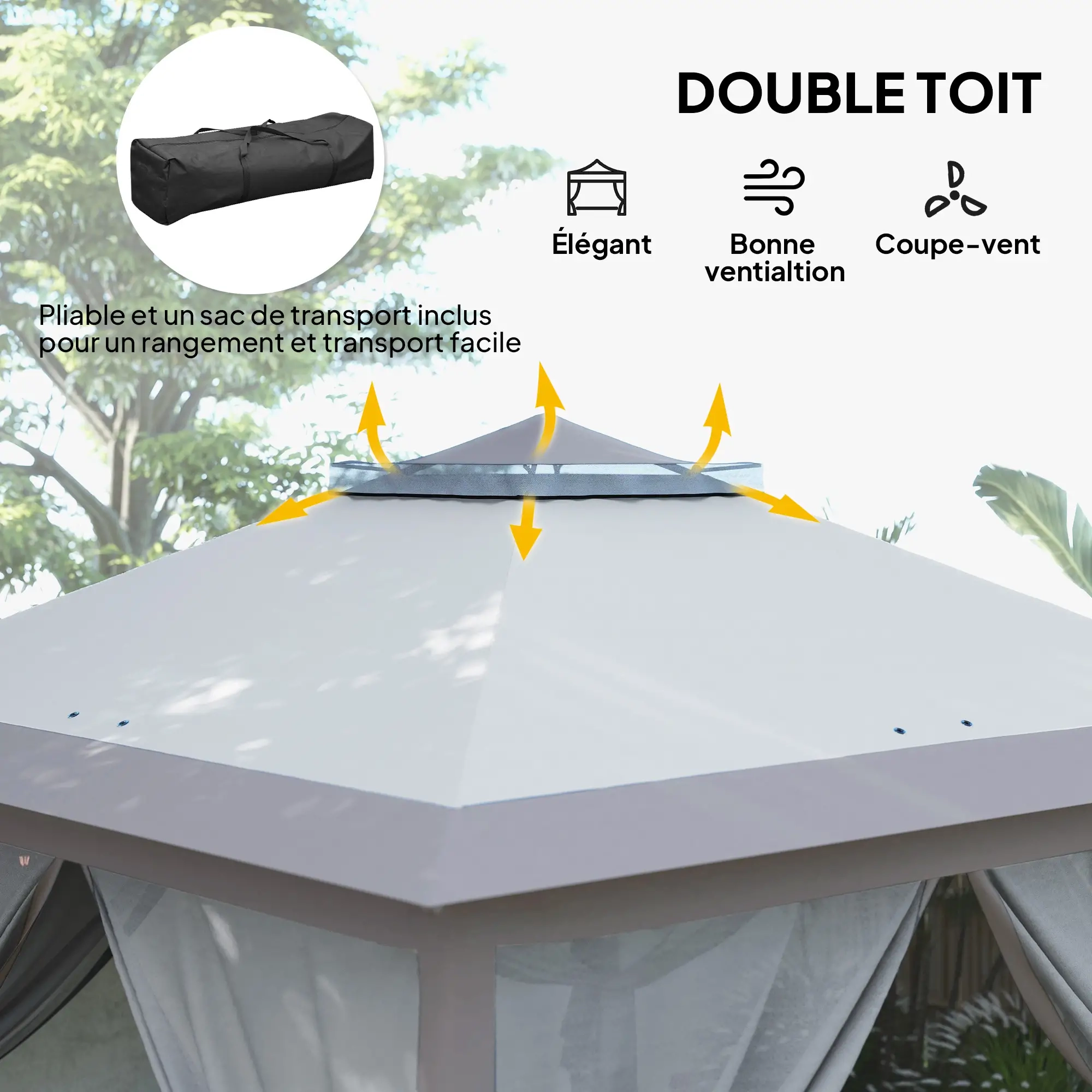 Tonnelle 3 x 3 m barnum de jardin Pop-up tente pliant double toit 4 moustiquaires zippées amovibles + sac de transport